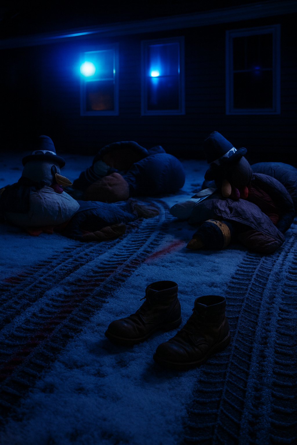 Diane didn’t answer. Up ahead, she could see the flashing tape around Glen Harrow’s yard, the dark smear in the snow where the plow had clipped too close. The inflatables were down now, deflated heaps of nylon, sagging like the aftermath of a failed party.