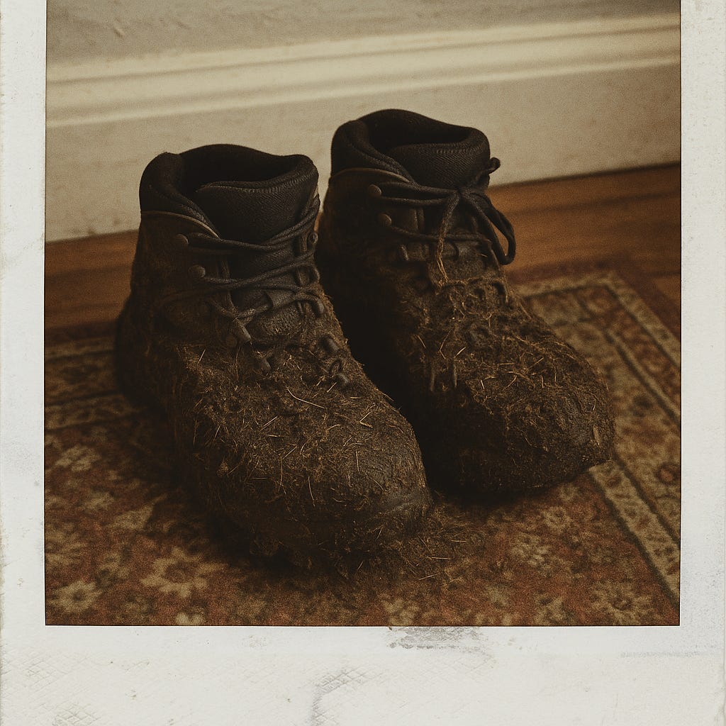 When I bent to grab it, I froze. Among the neat row of shoes waiting by the door sat a pair of hikers - mine - caked in mud.